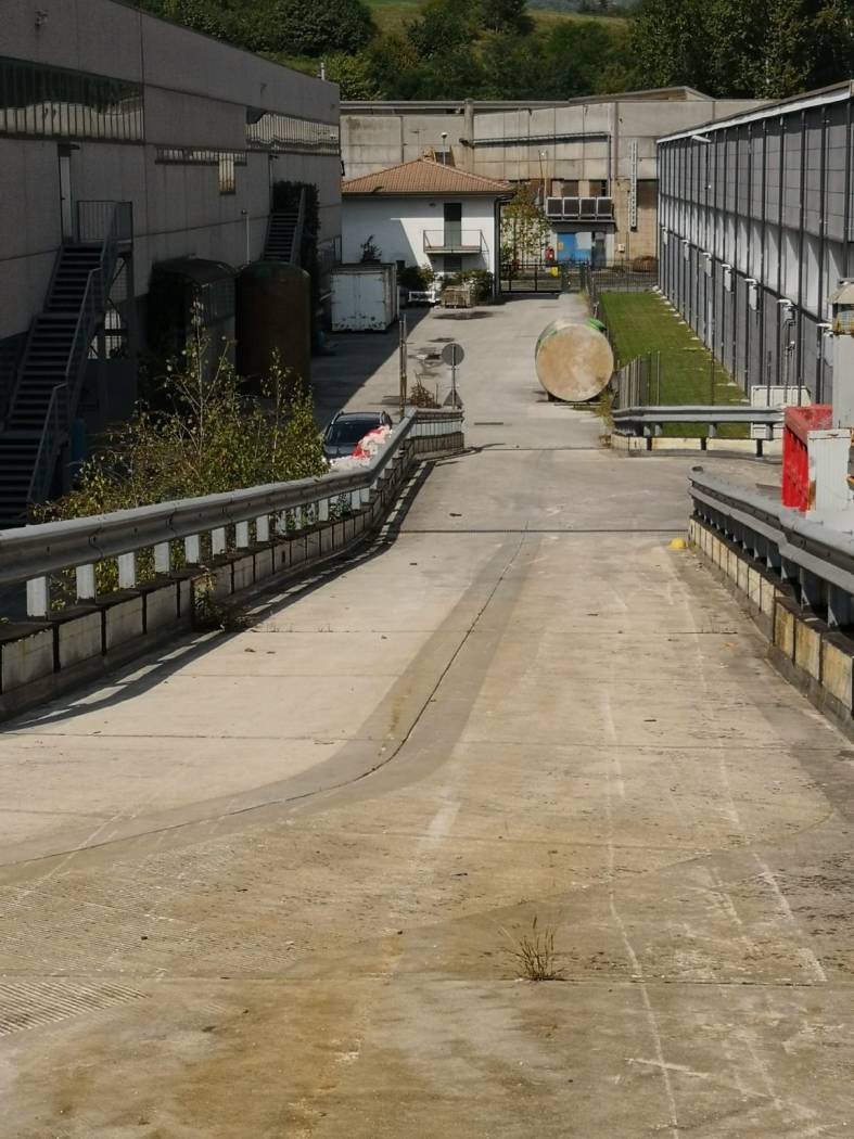L'accesso avviene per mezzo di una rampa in cls armato che sovrasta i depositi.