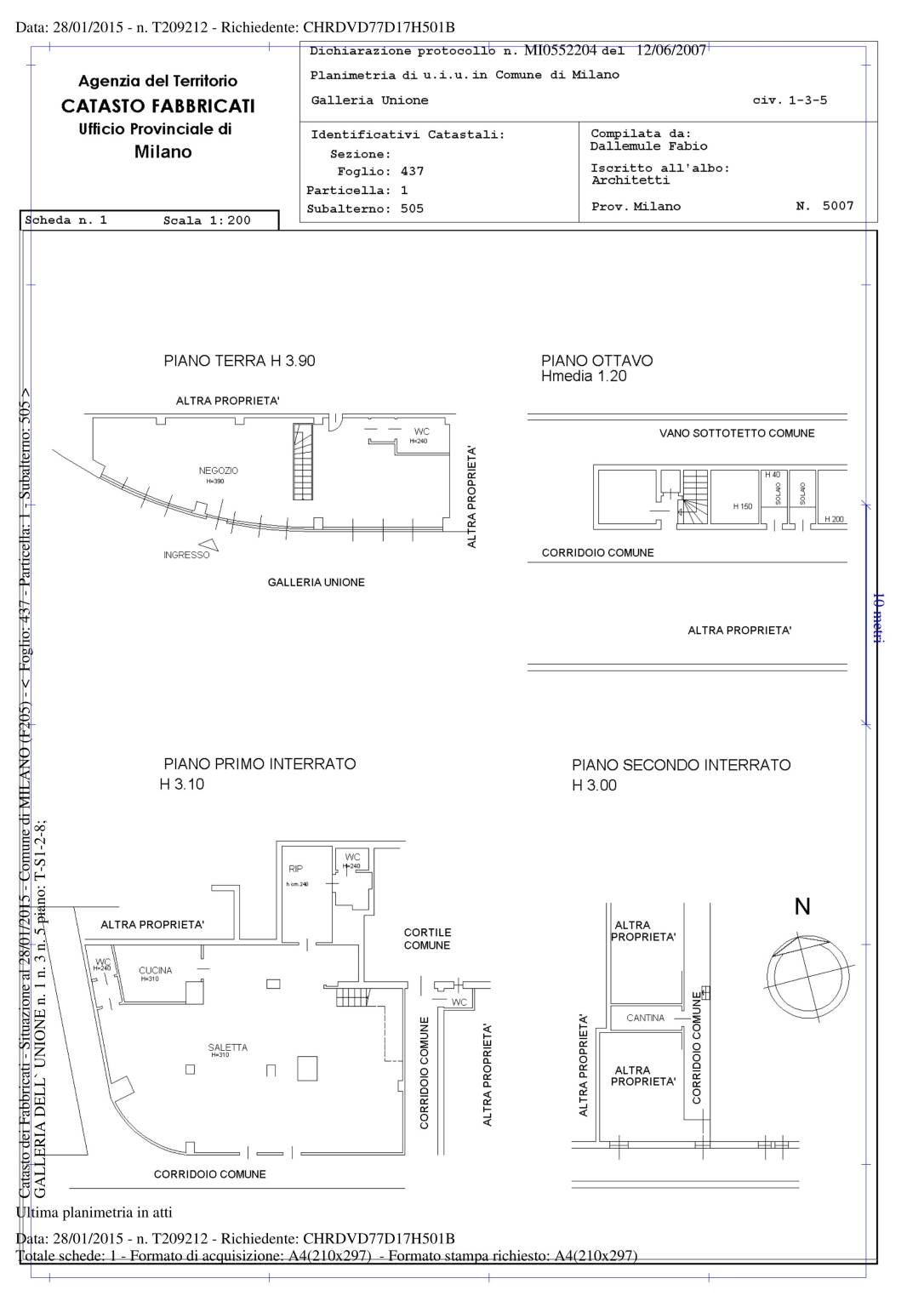 ESCLUSIVA DI ZONA. Unità immobiliare commerciale, precedentemente ad uso bar/ristorante, sito in condominio nel centro storico del comune di Milano e più precisamente in Galleria Unione 36.L'unità immobiliare è così costituita: a piano terra locale (ex bar) di 70 mq; al piano S1 unico spazio di 150 mq (ex sala con cucina) più piccolo soppalco di 10 mq; completano la proprietà una cantina a piano interrato S2, 2 solai al piano ottavo e un posto auto ad uso esclusivo nella corte condominiale.